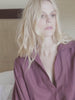 Camisa de modelagem ampla, confeccionada em tecido leve com predominância de viscose. Sem botões ou abertura frontal, a peça apresenta recorte único no centro e golas maiores, que acentuam a construção fluida. Possui mangas com abertura ampliada na barra.